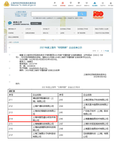 根据《上海市经济信息化委关于组织推荐2021年度“专精特新”企业的通知》(沪经信企〔2021〕539号),经专家评审和综合评估,华爱色谱被授予上海市2021年度“专精特新” 企业称号。