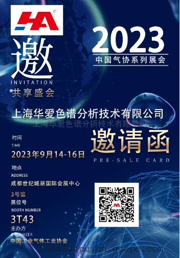 上海华爱色谱分析技术有限公司亮相成都世纪城新国际会展中心2023第二十四届中国国际气体设备、技术与应用展览会,欢迎业界同仁莅临展位3T43参观交流。